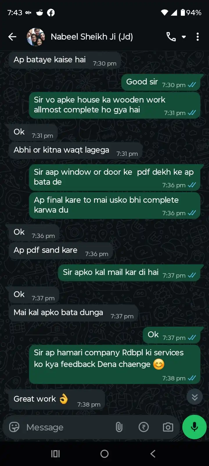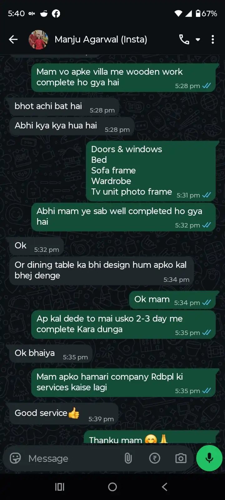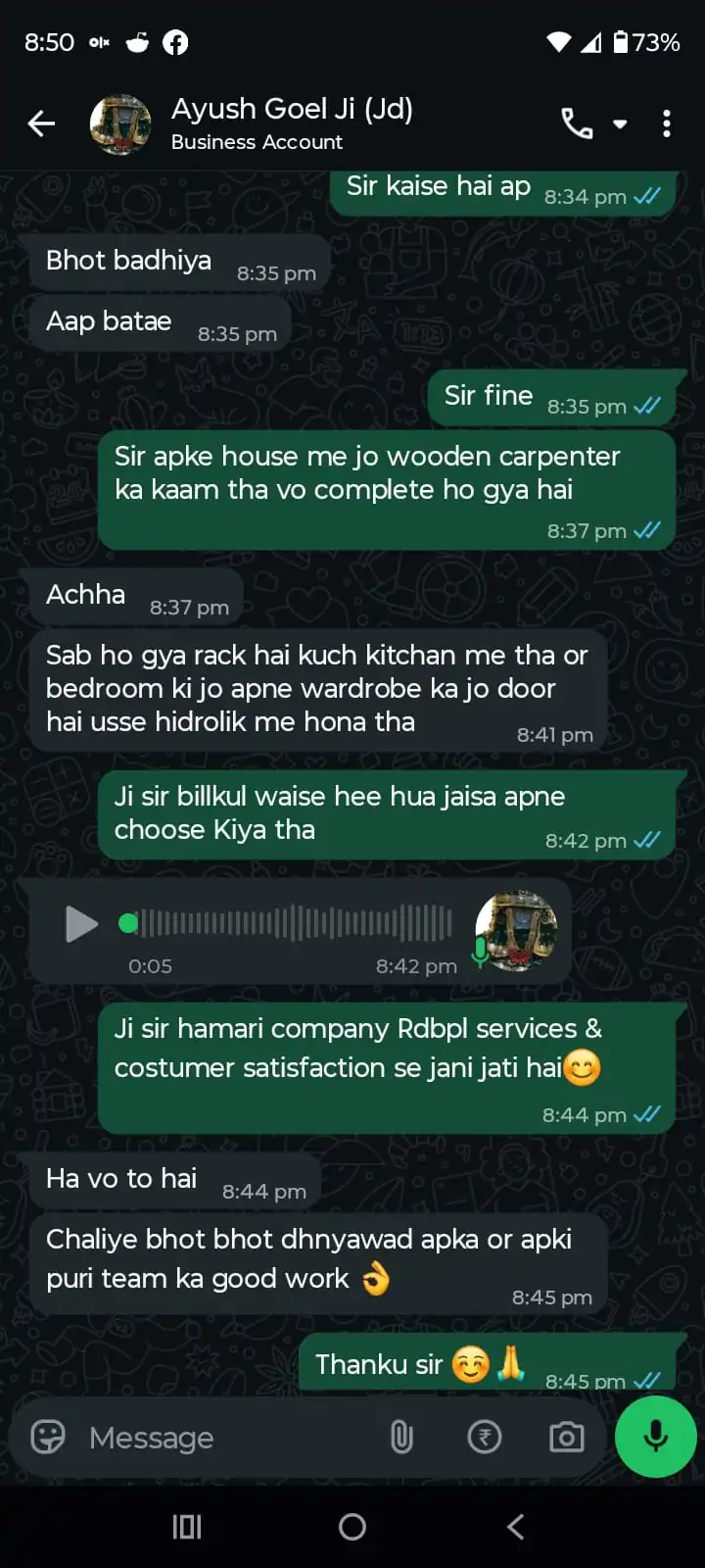 “Got modular kitchen and wooden cabinets installed by RDBPL. Material quality and finishing were premium. Work completed on time with professional supervision.”