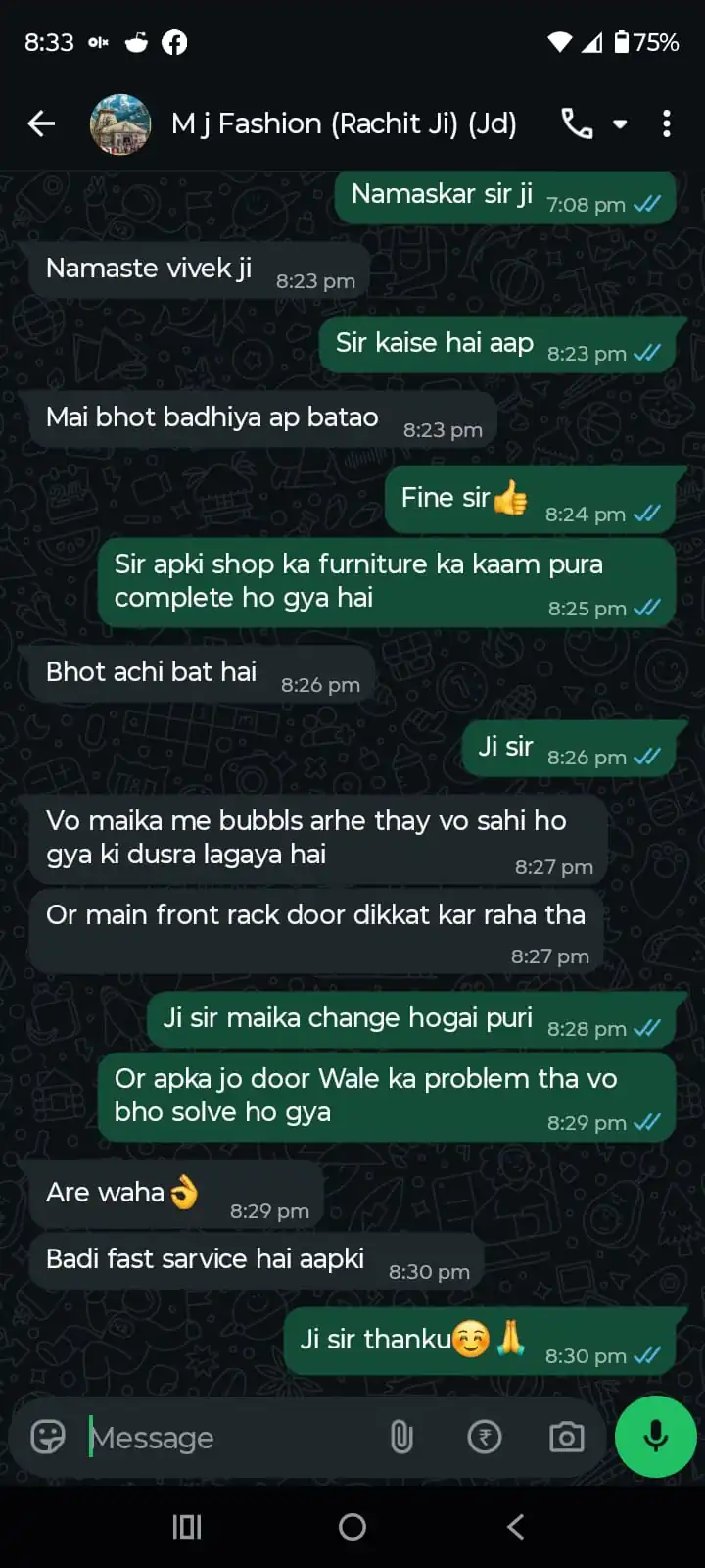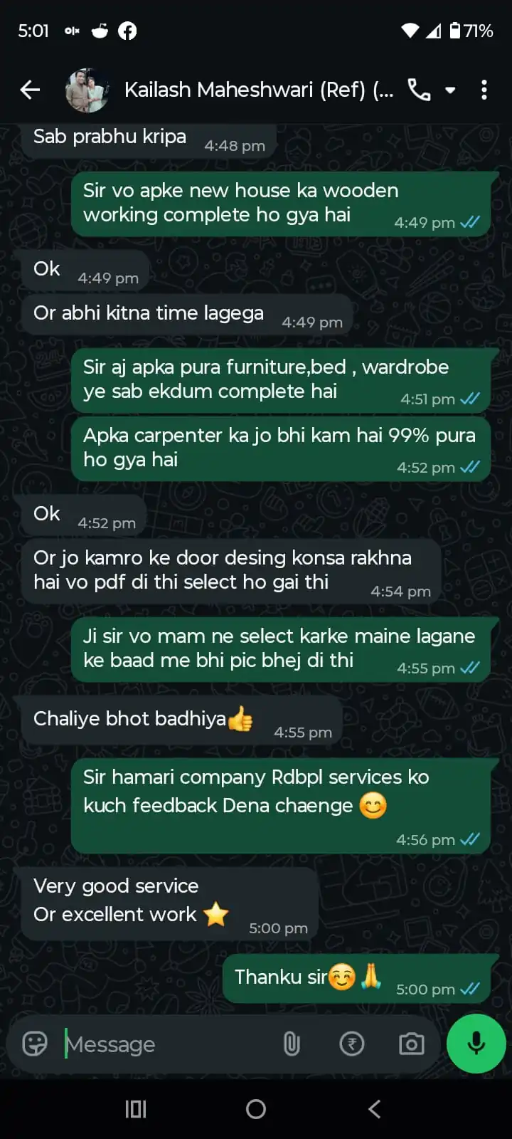 “Affordable carpenter wooden work with strong material quality. Doors, wardrobes and storage units installed neatly and cleanly. Highly satisfied with the finishing.”