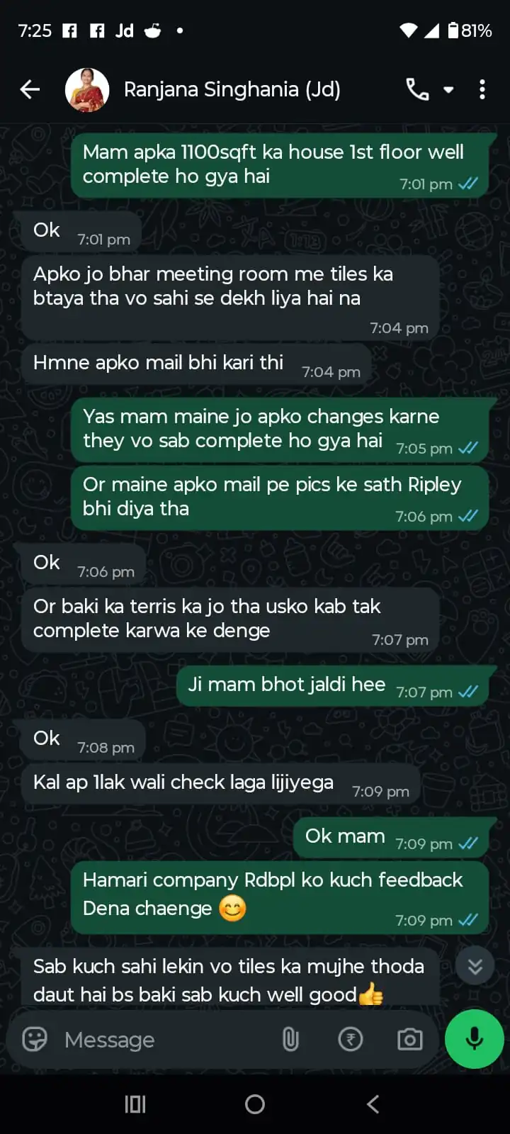 “Our villa construction project was handled professionally. Material quality and finishing work were top class. Highly recommended RDBPL.”