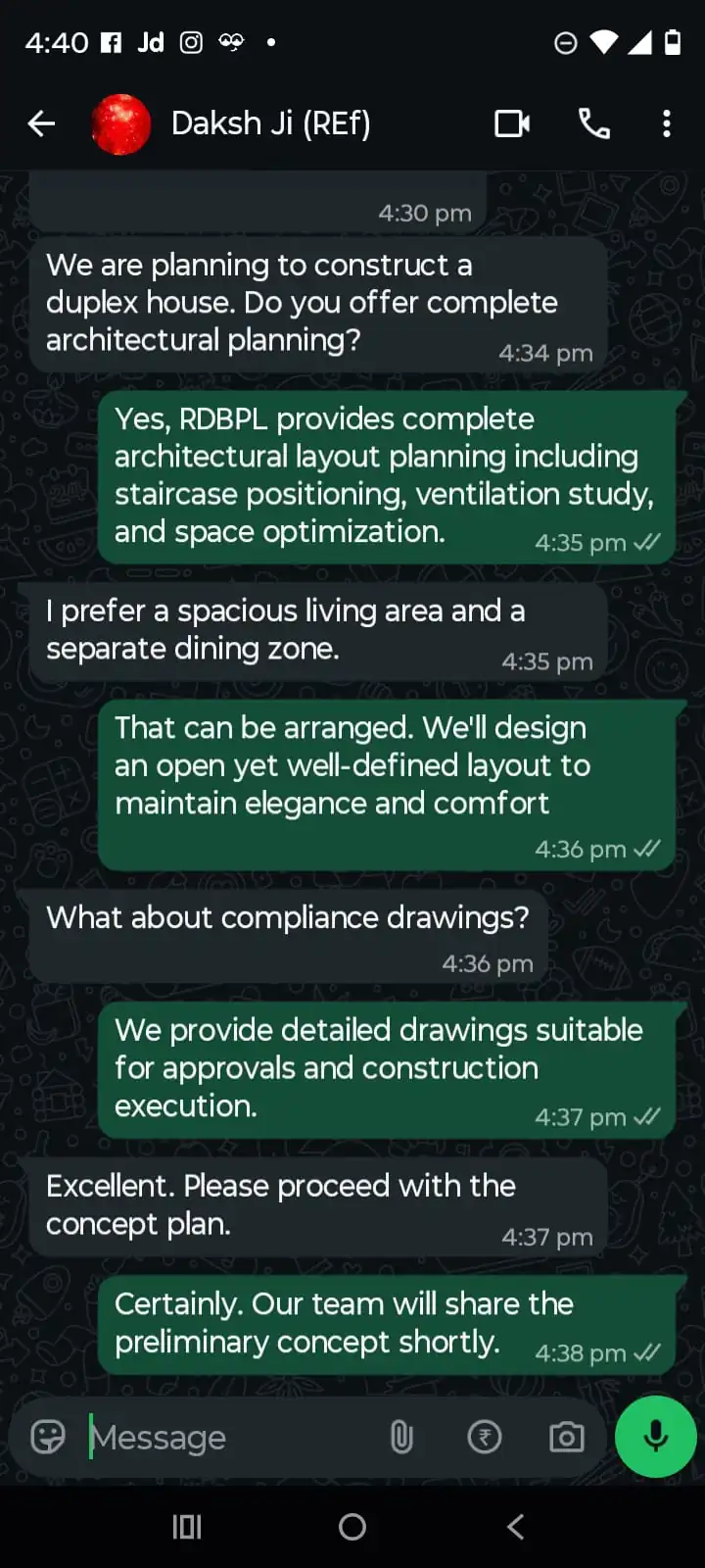 “Got our duplex house map designed by RDBPL. Proper ventilation, staircase planning and structural layout were professionally handled.”
