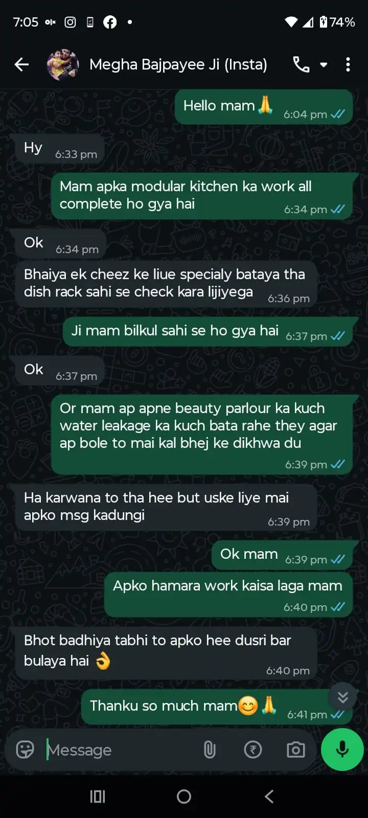 “Island modular kitchen installed in our duplex. Premium finish and smart storage solutions. Very professional and cooperative team.”