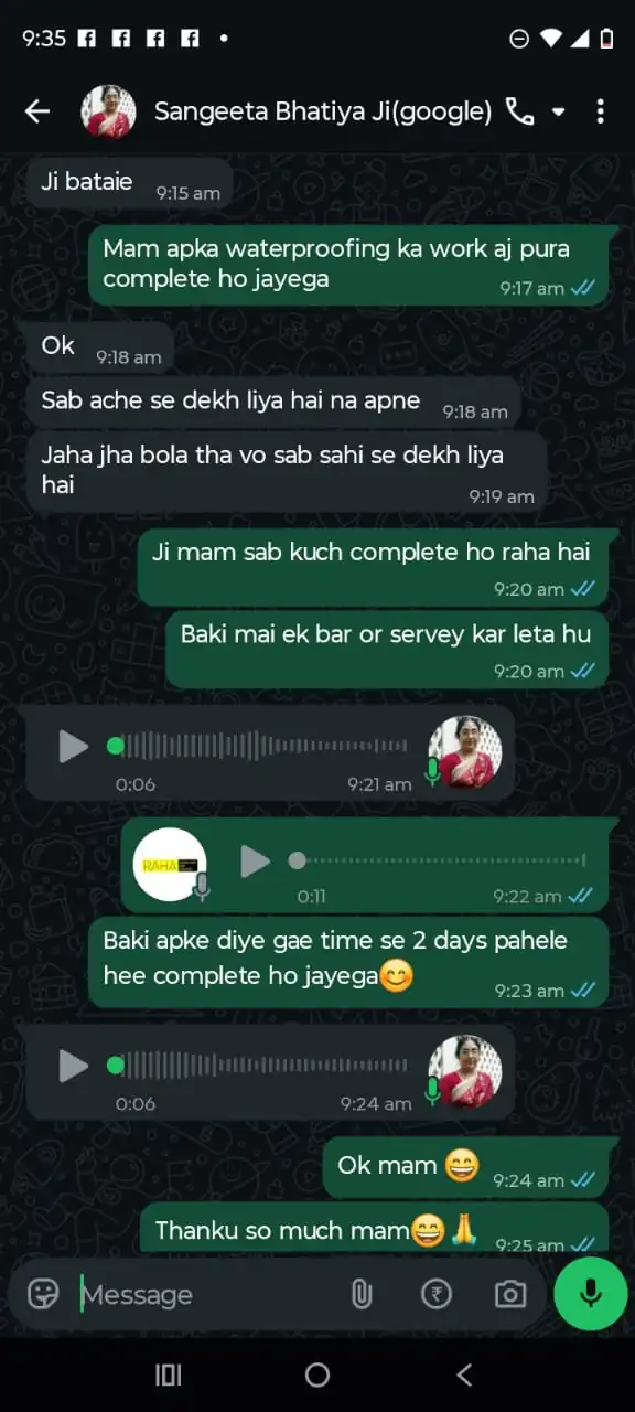 “Terrace leakage problem tha jo 2 saal se solve nahi ho raha tha. RDBPL team ne proper inspection karke waterproofing ki aur ab baarish me bilkul seepage nahi ho raha.”