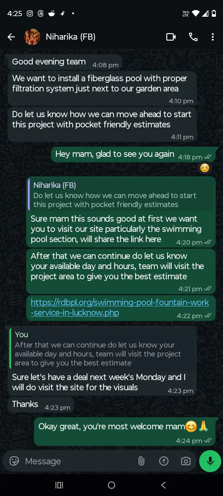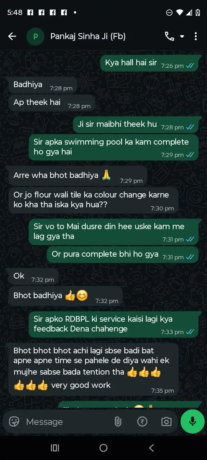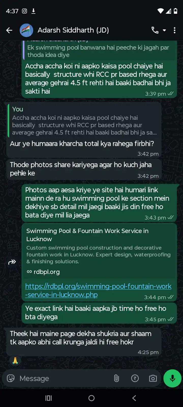 “RDBPL constructed our farmhouse swimming pool with perfect finishing. Waterproofing and filtration system works flawlessly. Best swimming pool contractor in Lucknow.”