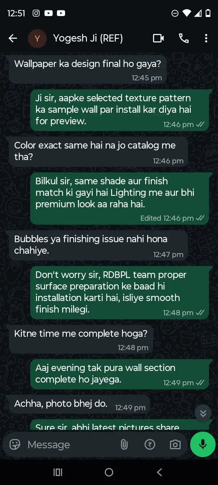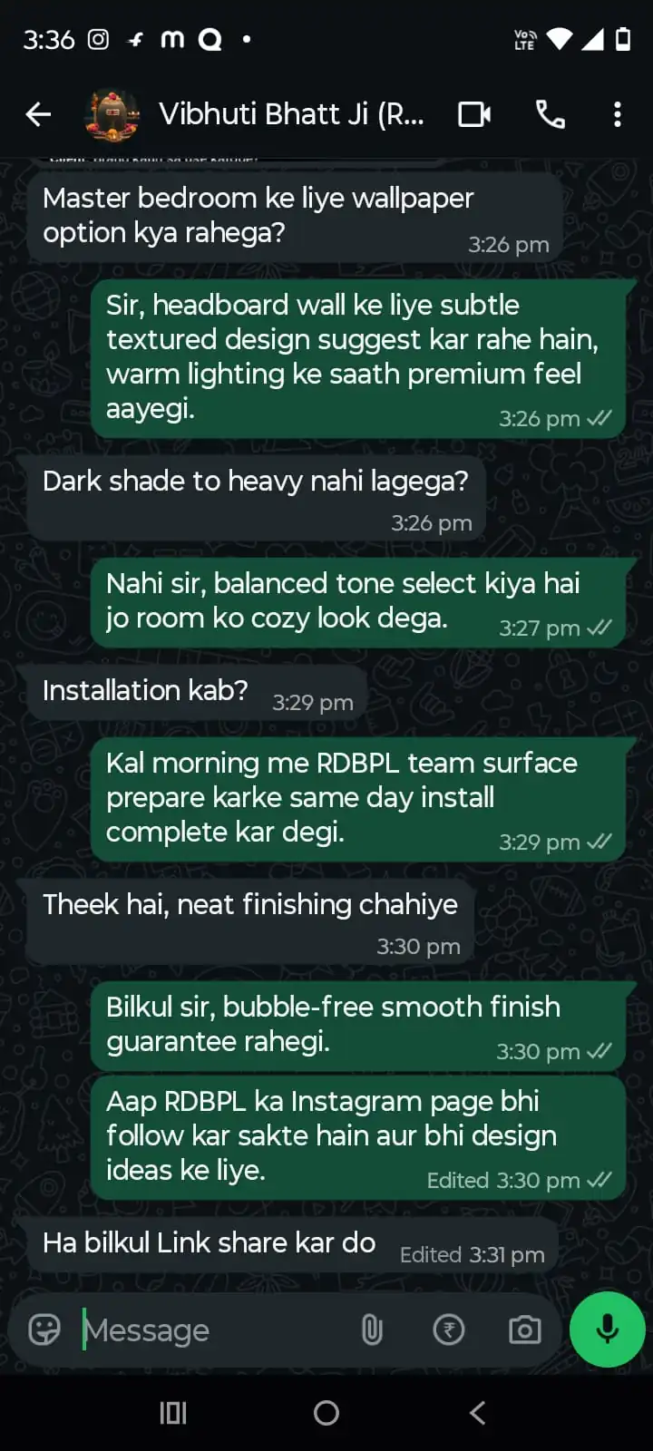 “RDBPL team installed designer wallpaper in our living room perfectly. The finishing is smooth, elegant and completely transformed our space. Highly recommended for modern interiors in Lucknow.”