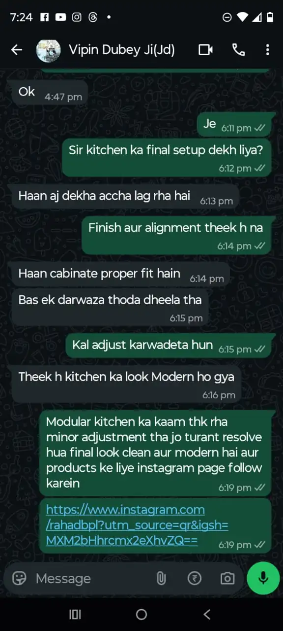 “Affordable modular kitchen pricing with high-quality hardware. RDBPL team handled everything from design to final finishing smoothly.”