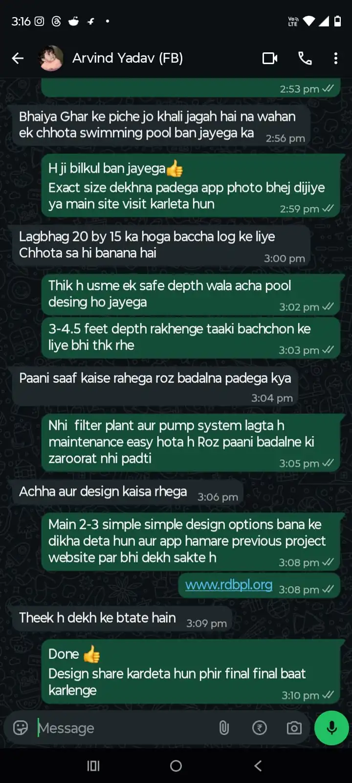 “RDBPL constructed our farmhouse swimming pool with perfect finishing. Waterproofing and filtration system works flawlessly. Best swimming pool contractor in Lucknow.”